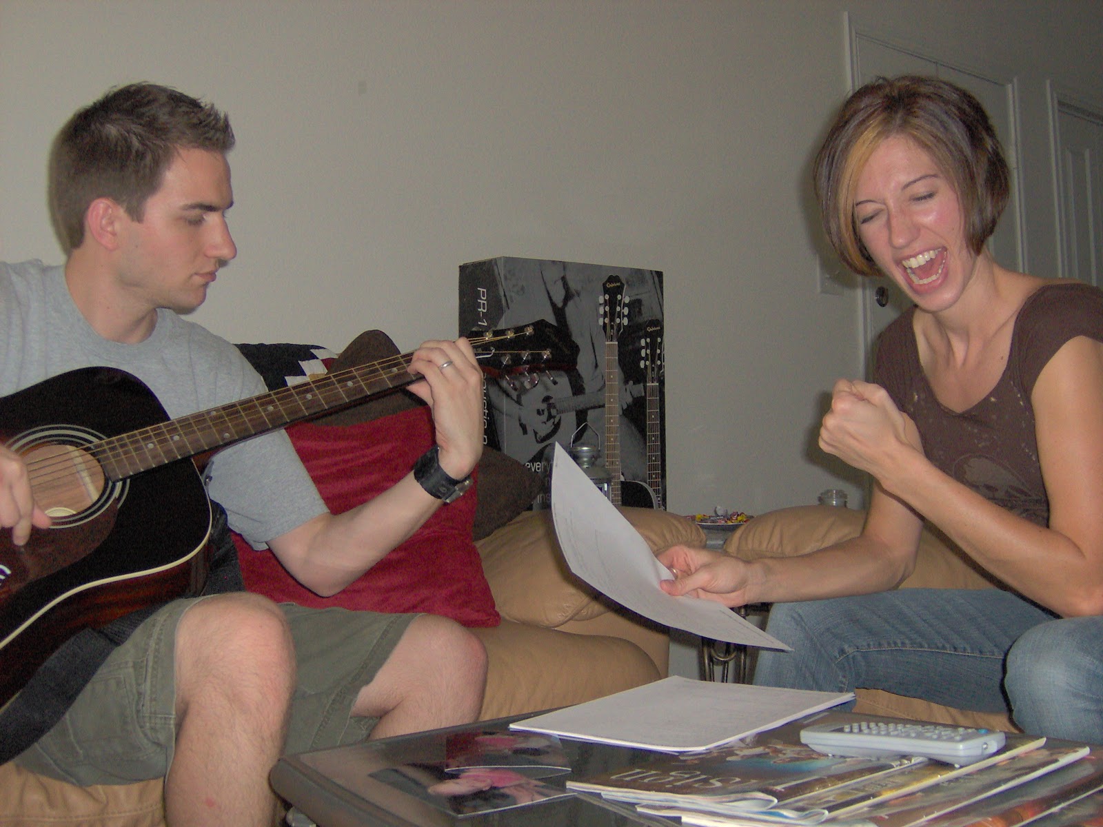 Heath loves to play acoustic and electric guitar. This is him jamming with one of our best friends Jill.